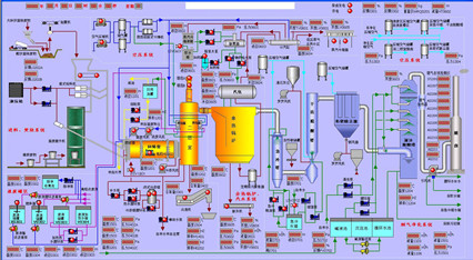 圖1:控制系統(tǒng)網(wǎng)絡(luò)結(jié)構(gòu)圖 危廢焚燒項(xiàng)目的系統(tǒng)控制采用分散式控制系統(tǒng),簡(jiǎn)稱(chēng)DCS(Distributed Control System)控制系統(tǒng),DCS是一個(gè)由過(guò)程控制級(jí)和操作管理級(jí)組成的以工業(yè)總線(xiàn)通訊網(wǎng)絡(luò)為基礎(chǔ)的計(jì)算機(jī)控制系統(tǒng),它綜合了計(jì)算機(jī)、通訊、顯示、控制4C技術(shù),以分散控制、集中操作、分級(jí)管理、配置靈活、方便組態(tài)為基本思想,它具有高度的可靠性及開(kāi)放性。該系統(tǒng)代表當(dāng)今工業(yè)控制領(lǐng)域的先進(jìn)水平,廣泛地應(yīng)用于工業(yè)自動(dòng)控制領(lǐng)域之中。 DCS系統(tǒng)控制焚燒線(xiàn)設(shè)備的運(yùn)行,操作員在中控室通過(guò)上位計(jì)算機(jī)進(jìn)行遠(yuǎn)程操作,焚燒處理過(guò)程的工藝參數(shù)由DCS系統(tǒng)監(jiān)視,運(yùn)行數(shù)據(jù)通過(guò)控制計(jì)算機(jī)顯示并記錄,便于操作員觀測(cè)焚燒線(xiàn)的運(yùn)行。DCS系統(tǒng)具有和廠級(jí)計(jì)算機(jī)管理系統(tǒng)通訊的功能,焚燒車(chē)間和全廠總控制室可進(jìn)行數(shù)據(jù)交換,焚燒車(chē)間設(shè)備運(yùn)行管理數(shù)據(jù)報(bào)表可上傳至全廠總控制室。 控制系統(tǒng)由上位控制計(jì)算機(jī)、系統(tǒng)組態(tài)程序、DCS系統(tǒng)控制器、I/O模件、現(xiàn)場(chǎng)一次儀表、控制閥、分系統(tǒng)PLC(Programmable Logic Controller)、變頻器、二次顯示儀表、現(xiàn)場(chǎng)總線(xiàn)等組成。系統(tǒng)設(shè)上位計(jì)算機(jī)3臺(tái)(數(shù)量可根據(jù)用戶(hù)需求增加或減少),其中2臺(tái)系統(tǒng)操作員站、1臺(tái)工程師/操作員站,操作人員在焚燒控制室內(nèi)通過(guò)操作站系統(tǒng)進(jìn)行監(jiān)視和控制操作。操作人員在焚燒控制室內(nèi)通過(guò)鍵盤(pán)和鼠標(biāo)對(duì)系統(tǒng)進(jìn)行監(jiān)視和控制操作。除在操作臺(tái)上設(shè)置重要設(shè)備的緊急操作按鈕外,控制室不設(shè)其它常規(guī)儀控表盤(pán)。 根據(jù)工藝設(shè)計(jì)要求,焚燒線(xiàn)前部、中部、尾部及輔助車(chē)間均設(shè)有工藝測(cè)點(diǎn),現(xiàn)場(chǎng)設(shè)一次儀表進(jìn)行監(jiān)測(cè),主要有熱電阻、熱電偶、壓力變送器、液位傳感器、流量傳感器等。一次儀表將測(cè)量信號(hào)轉(zhuǎn)換為標(biāo)準(zhǔn)電信號(hào)反饋到DCS系統(tǒng)模擬輸入接口,DCS系統(tǒng)對(duì)信號(hào)進(jìn)行模-數(shù)轉(zhuǎn)換處理,參與系統(tǒng)的監(jiān)控。 DCS系統(tǒng)控制總站通過(guò)總線(xiàn)實(shí)現(xiàn)通訊,系統(tǒng)通過(guò)監(jiān)控現(xiàn)場(chǎng)控制各子站(上料系統(tǒng)控制子站、組合燃燒系統(tǒng)控制子站、脫酸系統(tǒng)控制子站、除塵系統(tǒng)控制子站、鍋爐清灰系統(tǒng)控制子站等)實(shí)現(xiàn)對(duì)焚燒線(xiàn)各分系統(tǒng)的遠(yuǎn)程監(jiān)控。任何一個(gè)控制子站在DCS組態(tài)界面上都有獨(dú)立的顯示窗窗口,可方便的調(diào)開(kāi)其中任何一個(gè)窗口對(duì)其各項(xiàng)工作參數(shù)進(jìn)行設(shè)置和調(diào)整,分析和修正錯(cuò)誤。對(duì)焚燒線(xiàn)主要工況參數(shù)偏離正常運(yùn)行范圍進(jìn)行報(bào)警。 3.工藝流程圖及系統(tǒng)實(shí)現(xiàn)功能